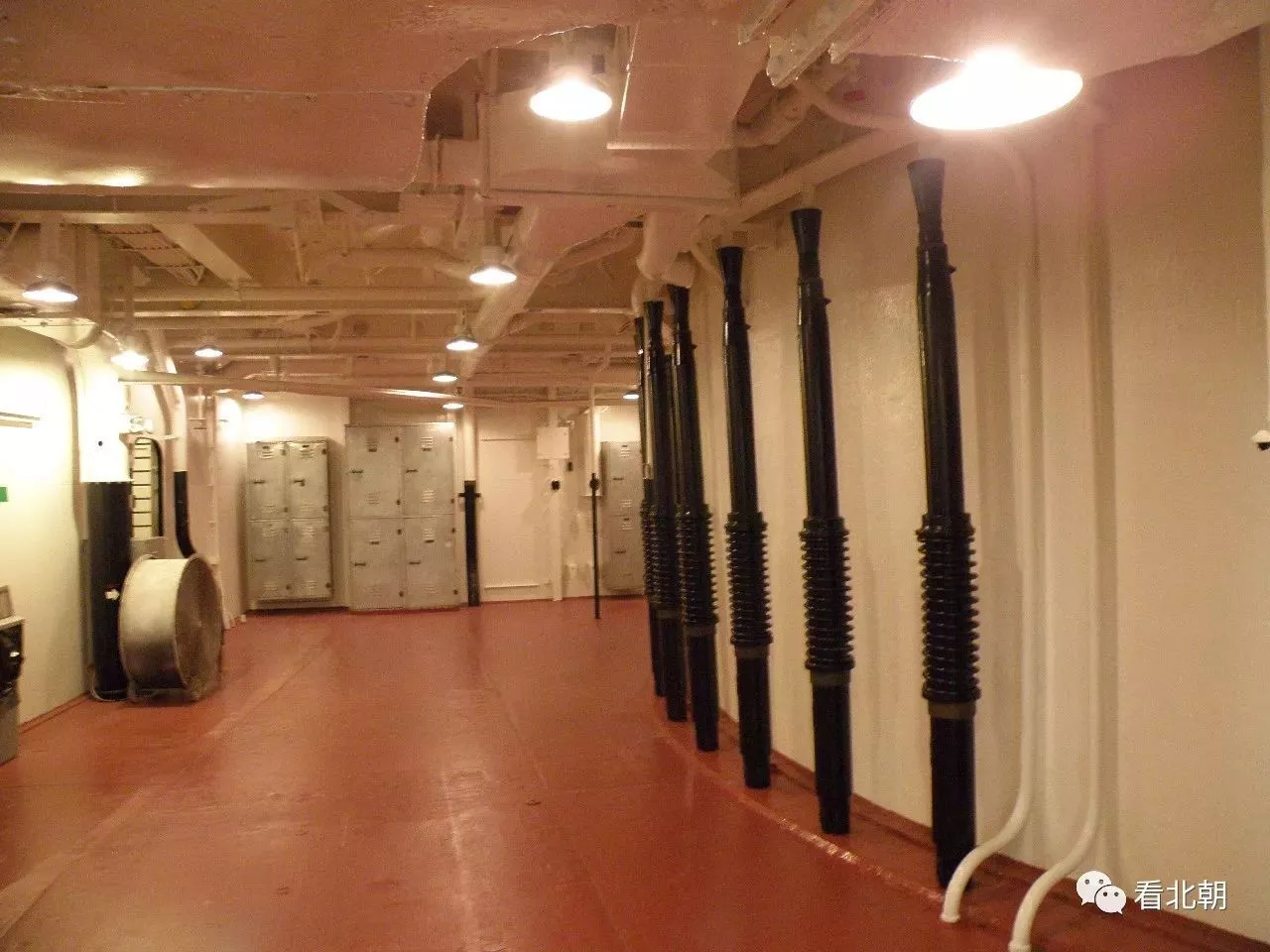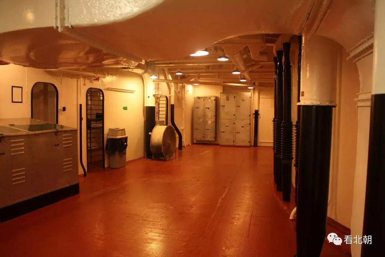 ▼從軍官休息室出來,是艦上普通士兵的生活區(qū)。餐廳啊什么的都在這里了,為了節(jié)省空間,備用的炮管也都放在這里,所有的桌椅都可以折疊。寬大的過道應(yīng)該是為了方便士兵們快速上崗設(shè)計的吧。