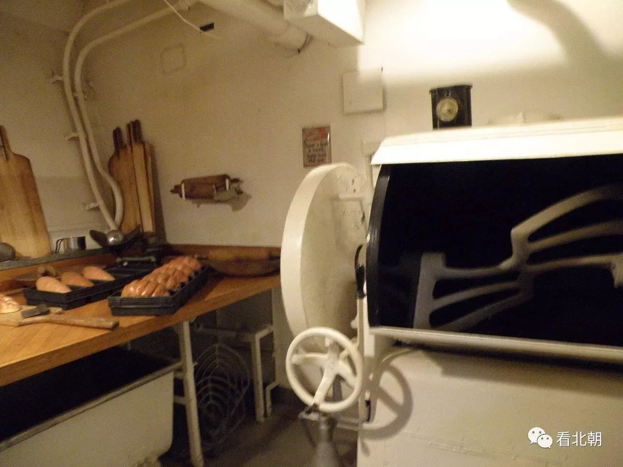 ▼隨處可見救生衣。▼軍官休息室,在狹小的空間內(nèi),能坐在這里喝喝茶真是愜意啊。▼從軍官休息室出來,是艦上普通士兵的生活區(qū)。餐廳啊什么的都在這里了,為了節(jié)省空間,備用的炮管也都放在這里,所有的桌椅都可以折疊。寬大的過道應(yīng)該是為了方便士兵們快速上崗設(shè)計的吧。▼左側(cè)是水兵艙、洗衣房、廚房等功能艙室。▼損管艙,好多潛水服和工具在里面。▼面包房和主食廚房。