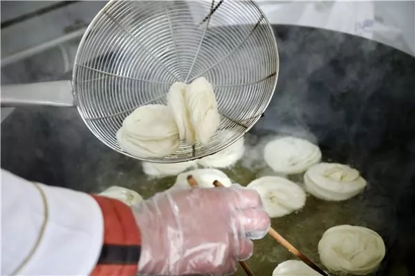 油炸中的甘露餅。 劉之昊攝