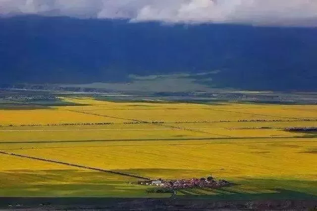高原深藍(lán)的天空下,幾十萬(wàn)畝大面積的油菜花開(kāi)的正艷,一望無(wú)際的金黃顯得異常斑斕,大色塊的簡(jiǎn)單構(gòu)圖給人豐富的遐想。