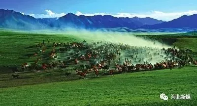 茵茵泛綠的草原上馬群馳騁,牛羊追逐。盛夏時(shí)節(jié),氣候涼爽,空氣清新,盡可領(lǐng)略其秀美的田園風(fēng)光。碧云天,黃花地,山映斜陽(yáng)夕照暉,一片連著一片,一方接著一方,那一份轟轟烈烈的大美,直讓人嘆為觀止,直讓人心曠神怡。