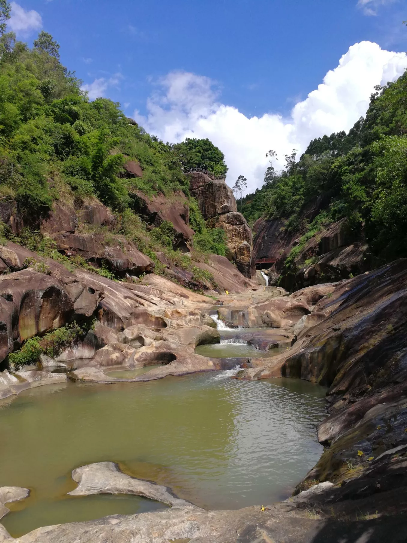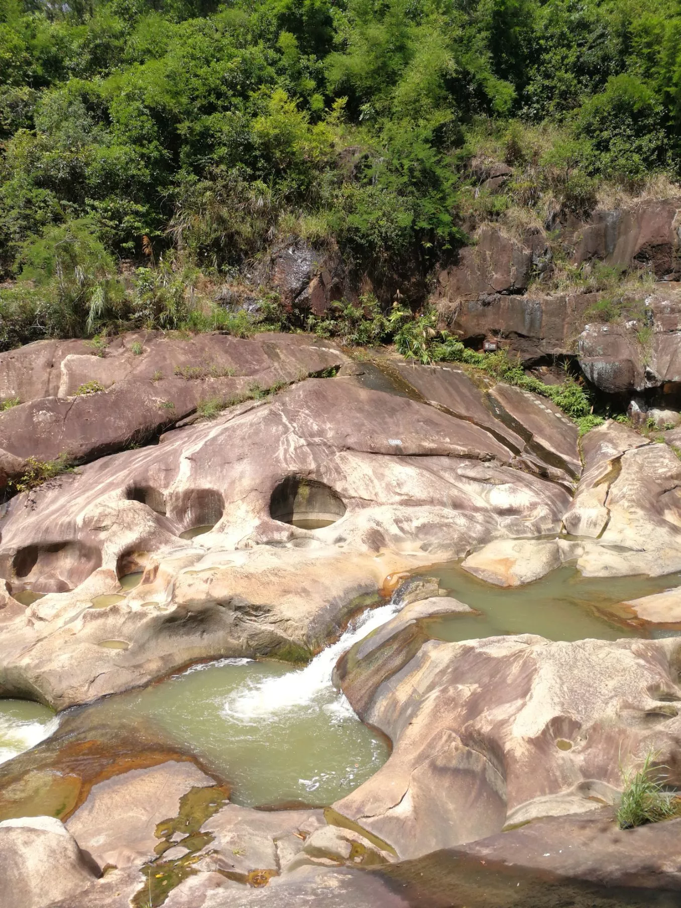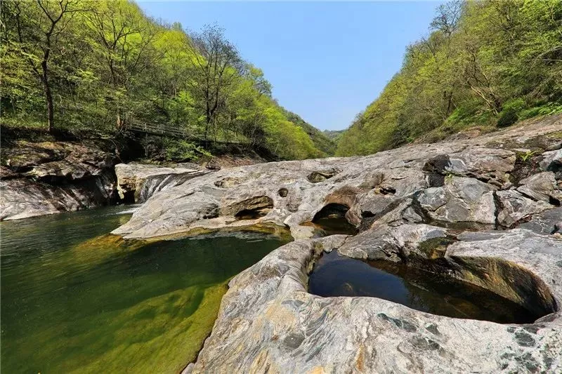 有不少深潭,水有點(diǎn)深,遠(yuǎn)古時(shí)候水流急沖刷出來的石頭凹陷,水深不見底,石頭上大大小小的圓形石窩,四時(shí)風(fēng)光各有不同,很原生態(tài),因?yàn)槠露?a href='/guaishi/' target=_blank>怪石嶙峋,目前還沒有旅游公司開發(fā),估計(jì)開發(fā)成本挺高。