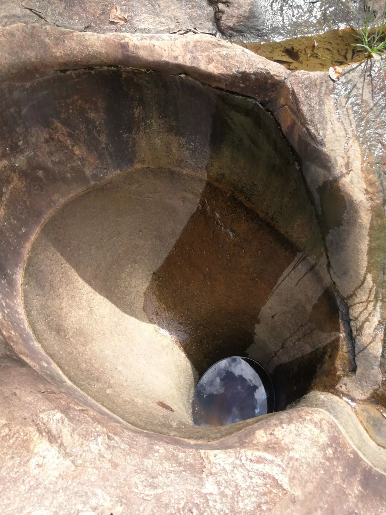 那就是冰臼,散布在約800米的河床上,千姿百態(tài),各顯風(fēng)騷。論形狀,有圓的、半圓的、圓弧的;論大小,有曬羌大的、簸箕大的、水桶大的、碗口大的、茶杯大的;論深淺,有扁擔(dān)深的、腳胯深的、手臂深的、腳背深的、巴掌深的;論密封性,有屯水長(zhǎng)草的、清亮見底的、干涸現(xiàn)石的、互相串通的、殘缺不全的;論高低,有懸?guī)r洞穴、石壁穿洞、石板挖臼、石裂臼開、獨(dú)石開孔、水下暗洞。