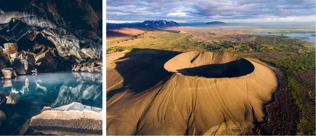 冰島是一個(gè)以其迷人的風(fēng)景而聞名的國(guó)家。冰島有十分多樣的自然景觀,可以看到水晶般的藍(lán)色冰川、瀉湖,紅色的沙灘,黑色的沙漠火山。其中最令人難忘的風(fēng)景是米湖(LakeMyvatn)——冰島北部一個(gè)壯觀的地區(qū),被認(rèn)為是冰島北極光之都。湖區(qū)是冰島第四大水域米湖(Lake Myvatn)的所在地,面積為36.5平方公里,擁有豐富的自然奇觀和野生動(dòng)物。米湖的周邊還有:美麗的熔巖堡壘Dimmuborgir和Hverfjall火山。Hverfjall火山是冰島最美麗的火山之一,有一個(gè)大約140米深,1000米寬的大型爆炸坑。它是世界上最大的爆炸隕石坑之一。