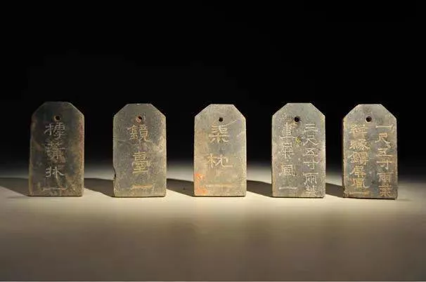 墓葬多次盜掘,破壞嚴(yán)重,但仍出土了一批遺物。計有金器、銀器、銅器、鐵器、玉器、骨器、漆器、瓷器、釉陶器、陶器、石器等。其中,有反映墓主人身份的刻銘石牌和鐵甲、劍、徽以及時代特征明顯的鐵帳架構(gòu)件等。另外,還有銅帶鉤、婆金蓋弓帽和大量的云母片以及陶器殘片等。