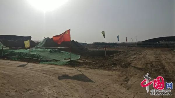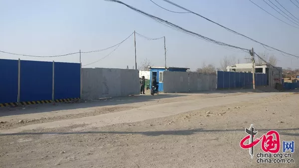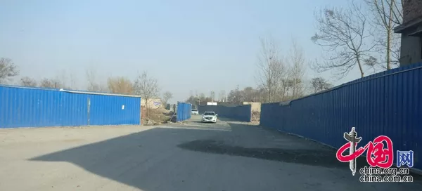 沿著這條路向西行進約7公里就到了曹操高陵發(fā)掘現(xiàn)場?,F(xiàn)場四周由圍擋圍著,門口有兩名保安把守。