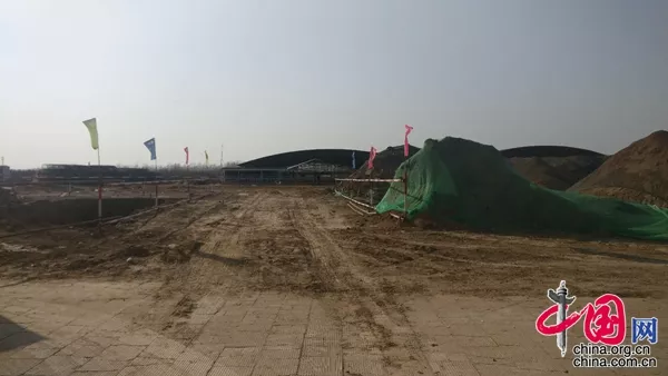 從門口望去,里邊有兩個大的發(fā)掘坑,發(fā)掘坑上部都有保護棚覆蓋著。旁邊原來建有的曹操高陵博物館已經(jīng)拆除了一半,可能是要重新規(guī)劃,為了擴大展覽展示規(guī)模。