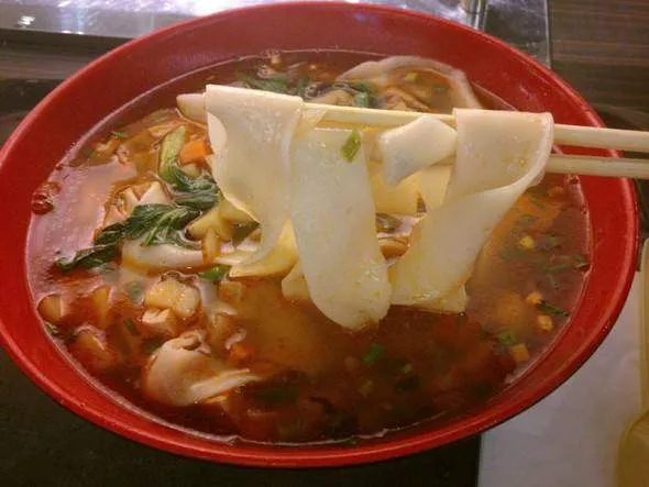 扯面是陜西省的地方傳統(tǒng)面食。扯面主要流行于陜西、山西南部以及甘肅的徽縣、兩當(dāng)、成縣。已有3000年歷史。以寶雞的西府扯面最為正宗,為中華名吃。主要原料有上白面粉、雞蛋、菠菜、紅蘿卜、調(diào)味品、臊(sào)子等。制作時(shí)先將面粉用鹽水和好,用濕布蓋好放置1小時(shí)以上,再調(diào)到較軟程度后搟成較厚較寬面片,然后手拿兩端,扯成薄而未斷的面片,入沸水鍋煮熟撈出,加調(diào)料和辣子粉,用燒熱的油潑后攪拌食之。