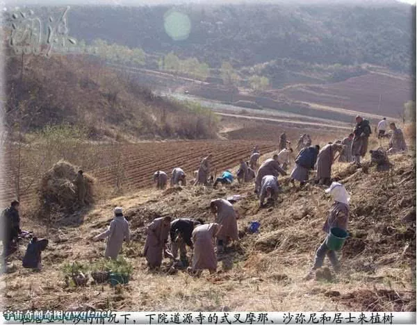 還有下院道源寺尼眾,也特意擠出時間來大悲寺栽樹。近兩萬棵樹苗,沒幾天功夫就栽完了。樹苗長在山上,善根深深扎在居士信眾的心里。這兩萬棵樹苗對荒山的綠化,局部環(huán)境的改善將發(fā)揮長遠的影響。