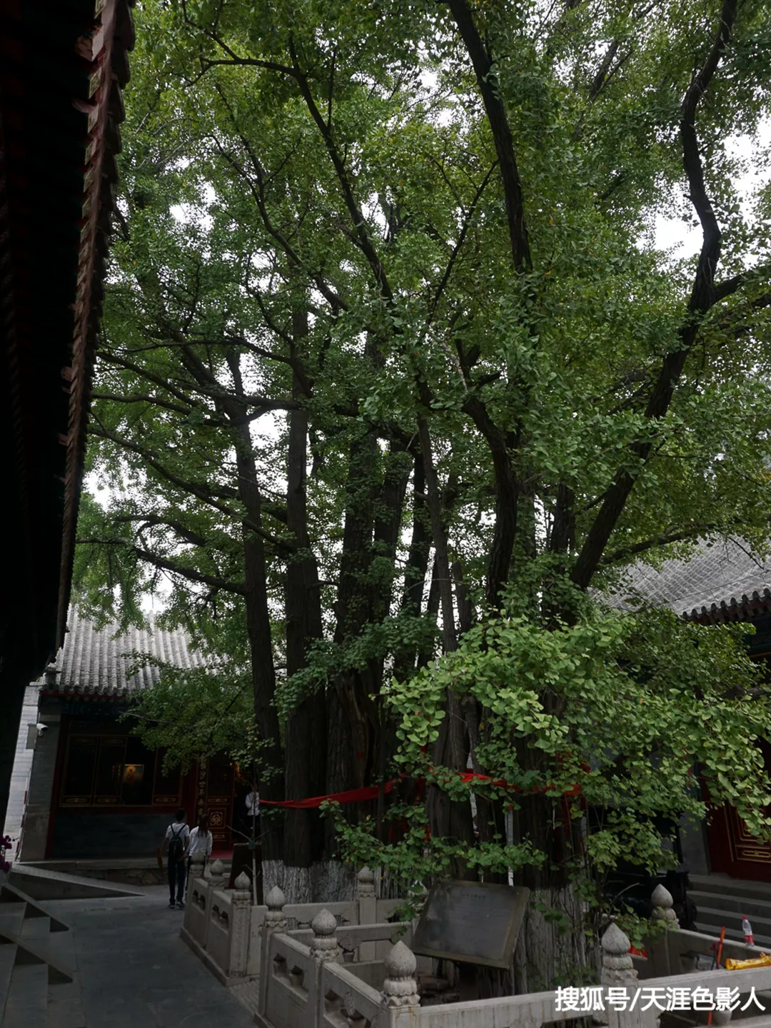圖為大悲寺后的兩棵銀杏古樹,為元代所植,樹齡已達700多年。