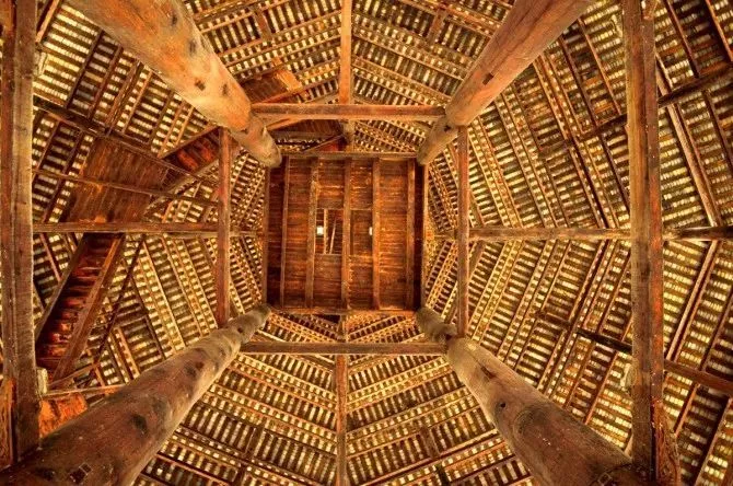鼓樓以杉木鑿榫銜接,頂梁柱撥地凌空,排枋縱橫交錯(cuò),上下吻合,采用杠桿原理,層層支撐而上。鼓樓通體全是本質(zhì)結(jié)構(gòu),不用一釘一鉚,由于結(jié)構(gòu)嚴(yán)密堅(jiān)固,可達(dá)數(shù)百年不朽不斜。
