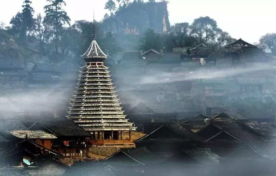 一座座鼓樓,在群山映照下,默默守候侗寨安詳。