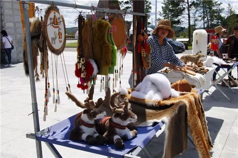 在這里展示的是鄂溫克人最為純正的獸皮文化手工藝品。所有獸皮都是手工熟制的,縫制獸皮的針線都是用手工制成的鹿筋線,這一古老的技藝已經(jīng)瀕臨失傳。