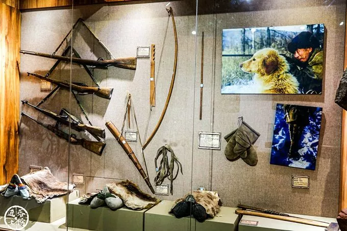 館內(nèi)形式不一的獵刀和彈藥為鄂溫克獵民描摹出波瀾壯闊的發(fā)展軌跡,帶銹的古跡斑斑證明了敖魯古雅真實(shí)存在的古老文化。