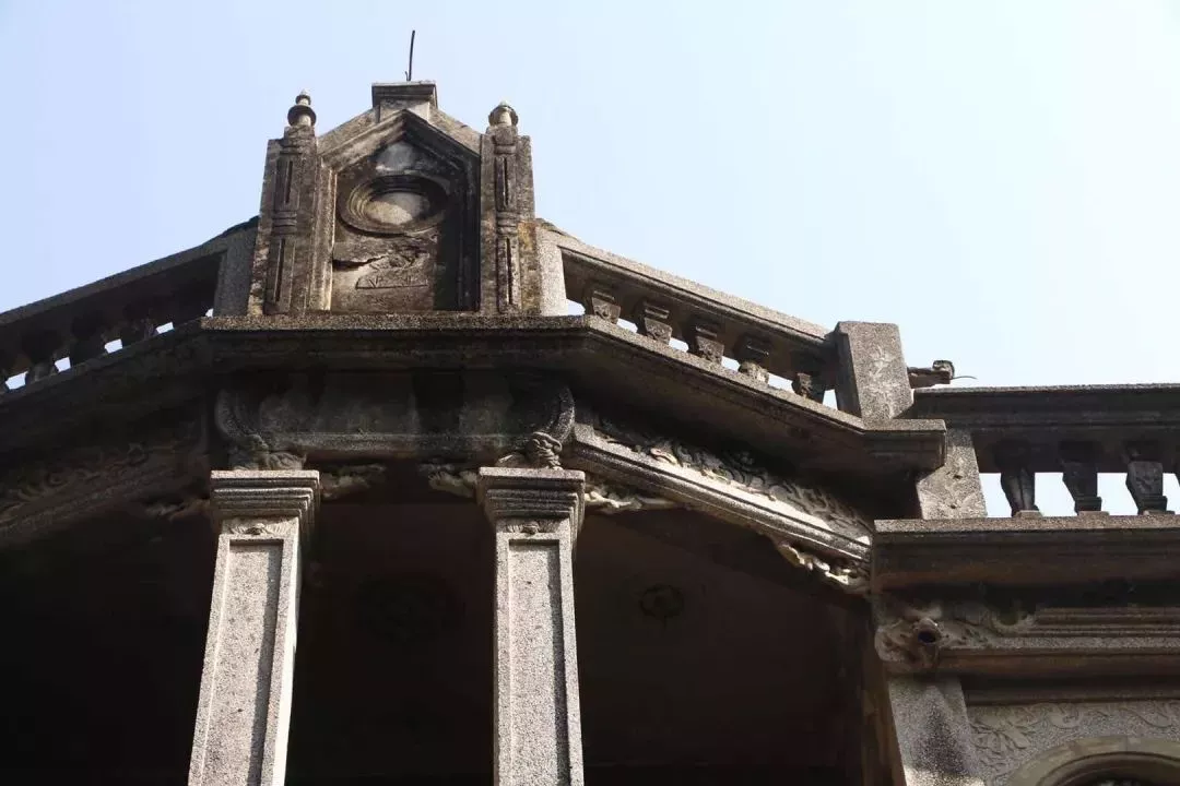 楓亭糕飄香的學(xué)士街上,有一棟被稱為廣源別墅的三開間三層大厝,外觀宏偉大氣,洗石子巴洛克風(fēng)格立面上飾以中國傳統(tǒng)卷書、八角窗,體現(xiàn)出幾何美和典雅美。從廣源別墅的北面往南看,別墅三層墻面色澤鮮明,曲線平滑的閩南式"桃彎規(guī)"山墻上,貼以繁復(fù)的螭龍泥塑裝飾,顯示出別樣風(fēng)采。大厝歷經(jīng)百年風(fēng)霜,風(fēng)采不減當(dāng)年。深入屋內(nèi),精細(xì)的"紅毛灰"(水泥)泥塑、馬約里卡瓷磚壁肚裝飾極盡華麗。在閩南,這種大厝被稱為"番仔厝",屬于中西折衷風(fēng)格建筑,百年前流行于廈泉地區(qū)。廣源別墅是廣源商號創(chuàng)辦人修建的,其早期在上海、寧波等地經(jīng)營桂圓發(fā)家,建造房子時從廈門買來圖紙,聘請惠安工匠施工,歷時多年而成。廣源別墅是一棟建在異地的閩南風(fēng)格建筑,同時它也見證了楓亭近代商貿(mào)發(fā)達(dá)和活躍的文化交流。