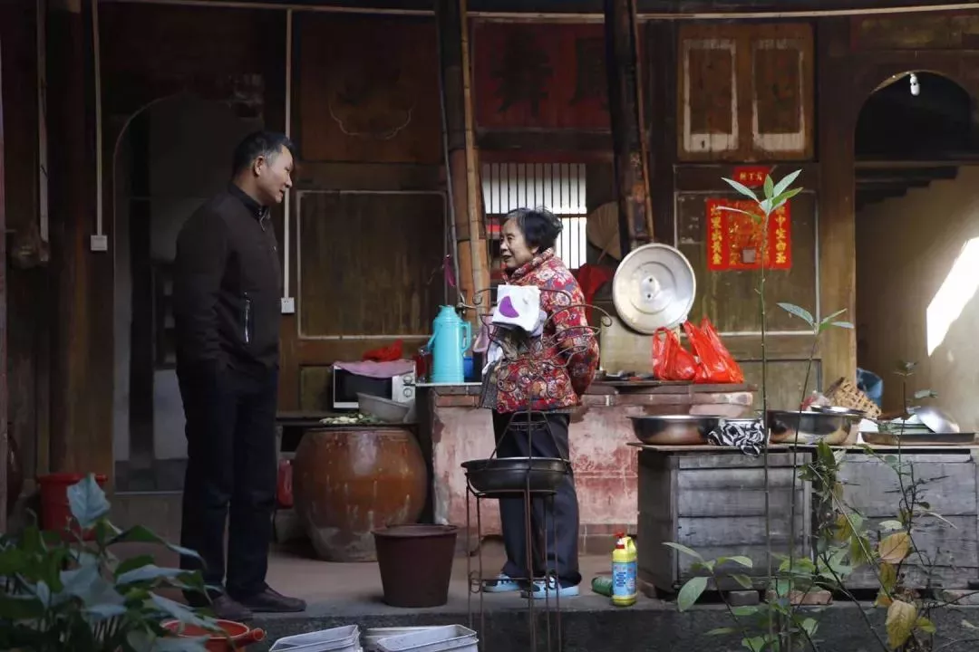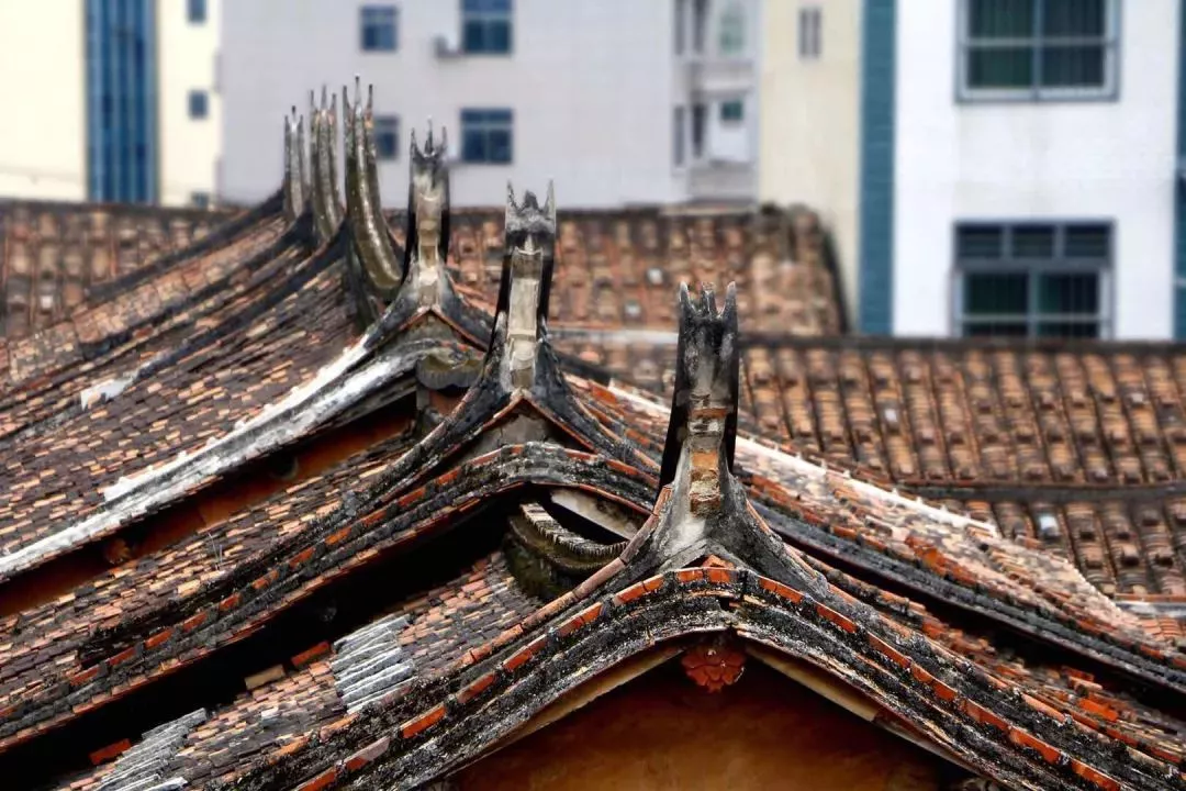 位于楓亭東部莆仙交界處的朱寨又稱錢江,現(xiàn)在這里工廠林立,是經(jīng)濟(jì)開發(fā)區(qū)。朱寨的海安朱氏民居是仙游縣文物保護(hù)單位,朱家早期經(jīng)商,發(fā)家后始建此宅,于民國十八年(1929)竣工。朱宅面朝湄洲灣,深兩進(jìn),面闊9間,左右各有兩列護(hù)厝,厝前磚埕左右各一座造型優(yōu)美的小樓,是一座豪氣的仙游家族群居式天井院大厝。以中廳為核心向兩邊擴(kuò)展的家族群居方式,影響了當(dāng)?shù)厝说男愿?。朱宅完?明廚亮灶",各家灶臺直接修建在天井周邊,在節(jié)省空間的同時把"飲食隱私"無間地展現(xiàn),既能讓族人有機(jī)會分享,也間接養(yǎng)成了接人待物圓融、熱情的"仙游性格"。宗族聚居團(tuán)結(jié)了族人,也促使了異姓之間或同姓不同支派之間的攀比。這種攀比往往落到了房屋的裝飾上,因此楓亭能工巧匠云集,在無意間造就大美楓亭。一件件精美的磚雕和一個個剔透的構(gòu)件是宗族攀比的產(chǎn)物,也是對美的追求。