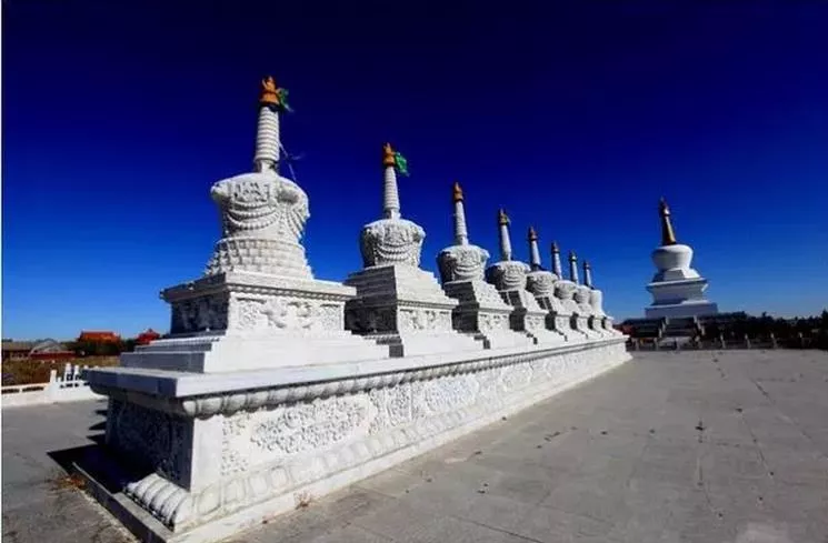 甘珠爾廟又稱(chēng)壽寧寺,乾隆三十六年(1771年)御批并由清廷撥銀建廟,是呼倫貝爾地區(qū)最大的喇嘛廟,距新巴爾虎左旗所在地阿木古郎鎮(zhèn)西北20公里。廟中曾收藏過(guò)藏蒙文《甘珠爾經(jīng)》,故而又得名為《甘珠爾廟》。白塔是藏傳佛教的典型建筑,佛經(jīng)中云:造塔、繞塔、頂禮佛塔甚至只是見(jiàn)到佛塔或被其影子觸及身體的眾生,都能得很大的利益。廟中主供釋迦牟尼、官布、扎木蘇倫等佛像,由壽寧寺曾收藏過(guò)藏蒙文《甘