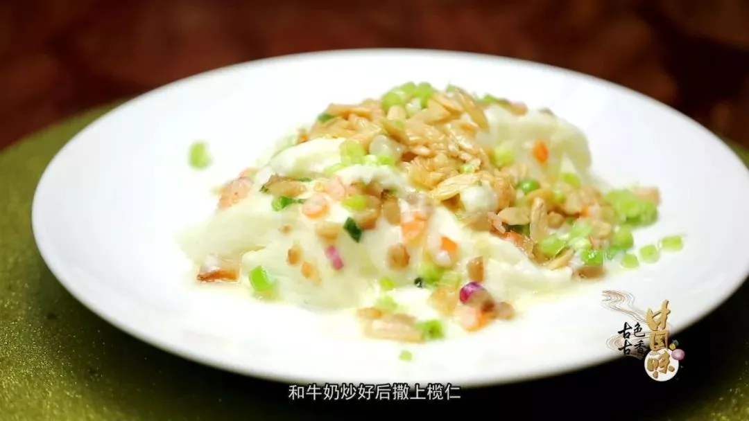 一般炒菜都避免不了干硬的口感,炒牛奶的口感卻像蒸蛋一樣柔軟,加上胗肝、冬菇等切粒作為配料,和牛奶炒好后撒上欖仁,口感甘香軟滑。