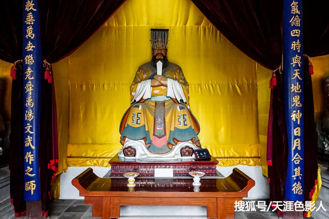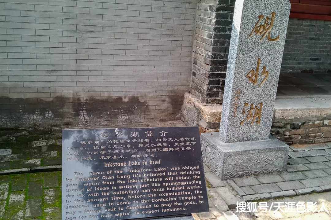 從側(cè)門走進(jìn)院內(nèi),院內(nèi)倒是十分寬敞,正北方大成殿,左右分別是墨寶齋和祖先堂。院內(nèi)的西南角有一口古井,名叫“硯水湖”。相傳這個名字是乾隆皇帝所賜,文人若是飲此泉水一杯,便會才思泉涌;若用此水硯墨,便會下筆如神。所以古時學(xué)子們?nèi)缫獞?yīng)試,都會先來此處飲泉硯墨,以祈求好運。