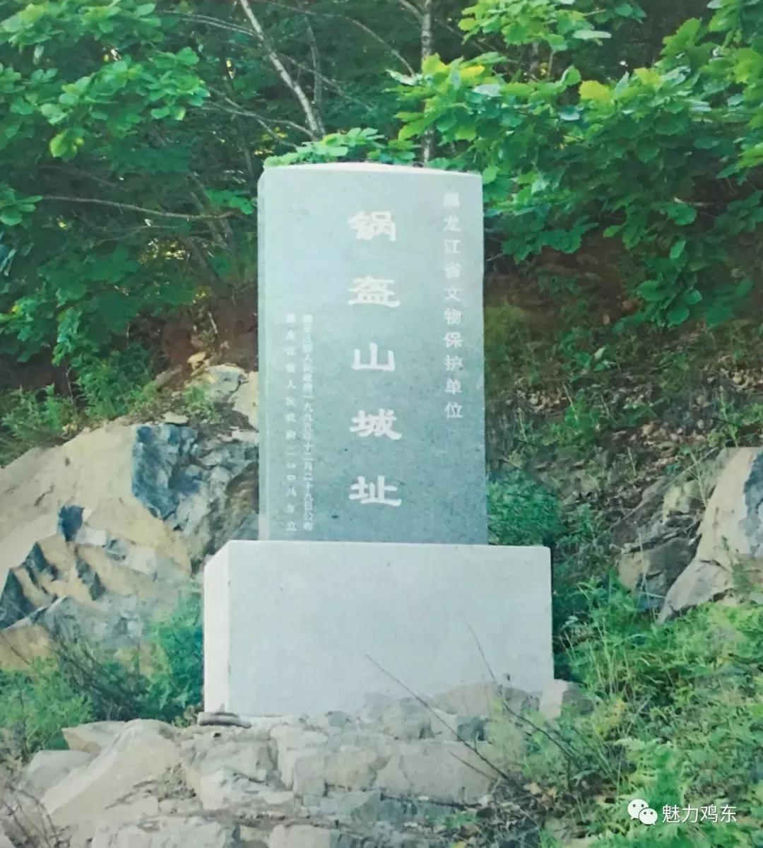 在鍋盔山上有一座古城遺址,占據(jù)了全部山頂斜面。古城始建于唐代、渤海國(guó)時(shí)期。1990年被黑龍江省省政府公布為省級(jí)文物保護(hù)單位,現(xiàn)存遺址古跡兩處,古城墻、古井。古城墻順山勢(shì)沿頂部邊緣構(gòu)筑而成, 平均高度為2至3米,寬1.5米至3米,全長(zhǎng)1333米,城墻每隔一段距離設(shè)有一個(gè)馬面(炮臺(tái)),共有十三個(gè)。遺址占地面積134,148平方米。據(jù)文物考古專家實(shí)地考古論證,其營(yíng)造形式和地勢(shì)選擇建制風(fēng)格為唐代渤海時(shí)期府、州一級(jí)城址。
