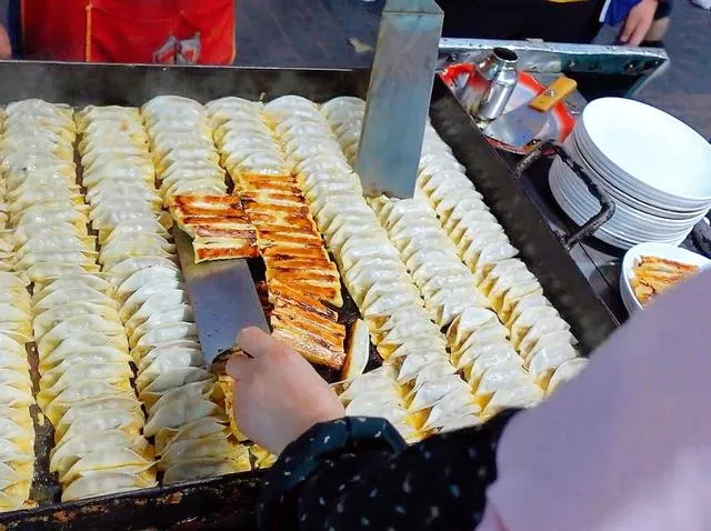 在我的印象里,只有燒烤類的館子是晚上開的,沒想到這家以鍋貼著稱的店,也是下午5點(diǎn)才開張,而且每天只賣8小時。當(dāng)然這個8小時是理論值,生意好的話,可能會提前賣光光喲。在這條煙火氣濃郁的美食街上,有很多餐飲店,這家其實(shí)門頭并不是很顯眼,門面也不大,門口擺了幾張桌子而已。只是因?yàn)椤_@家曾經(jīng)上過《宵夜江湖》,也正是因?yàn)檫@部紀(jì)錄片,一家不起眼的小店竟然成了網(wǎng)紅店,很多人都是看了這個節(jié)目來打卡的,當(dāng)然也包括我。