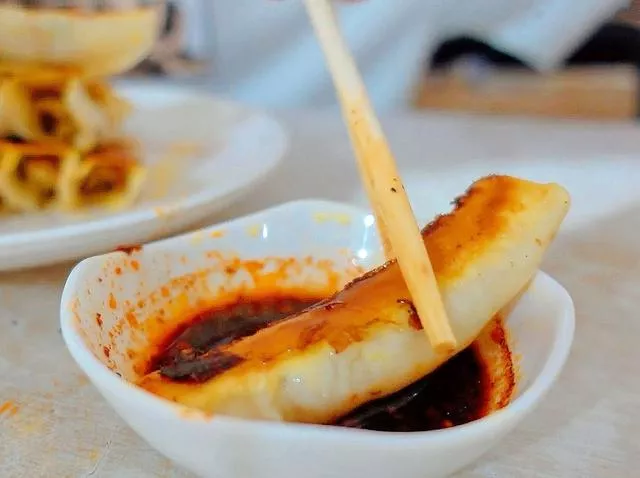鍋貼的餡只有豬肉韭黃餡的,也挺好,省著費(fèi)心去選了。餡料不愧是祖?zhèn)髅刂频?,非常的鮮嫩可口,非常好吃,但又說不出來哪里好,這可能就是祖?zhèn)髅刂起W料的傳奇所在。另外,跟大家說個小小的心得。如果您吃這個鍋貼,沒有什么太出彩的話,您就蘸一下他家調(diào)好的料汁。料汁基本上就是西安標(biāo)準(zhǔn)的? ?種不很辣卻很香的辣子,加上醋,混合的。本來就已經(jīng)很不錯的鍋貼,再加上這個料汁蘸著吃,要是還不能征服你的味蕾,那您就找老板要求退錢吧。多說一句,這是我說的,不是老板說的,膽子大的就去試試看。