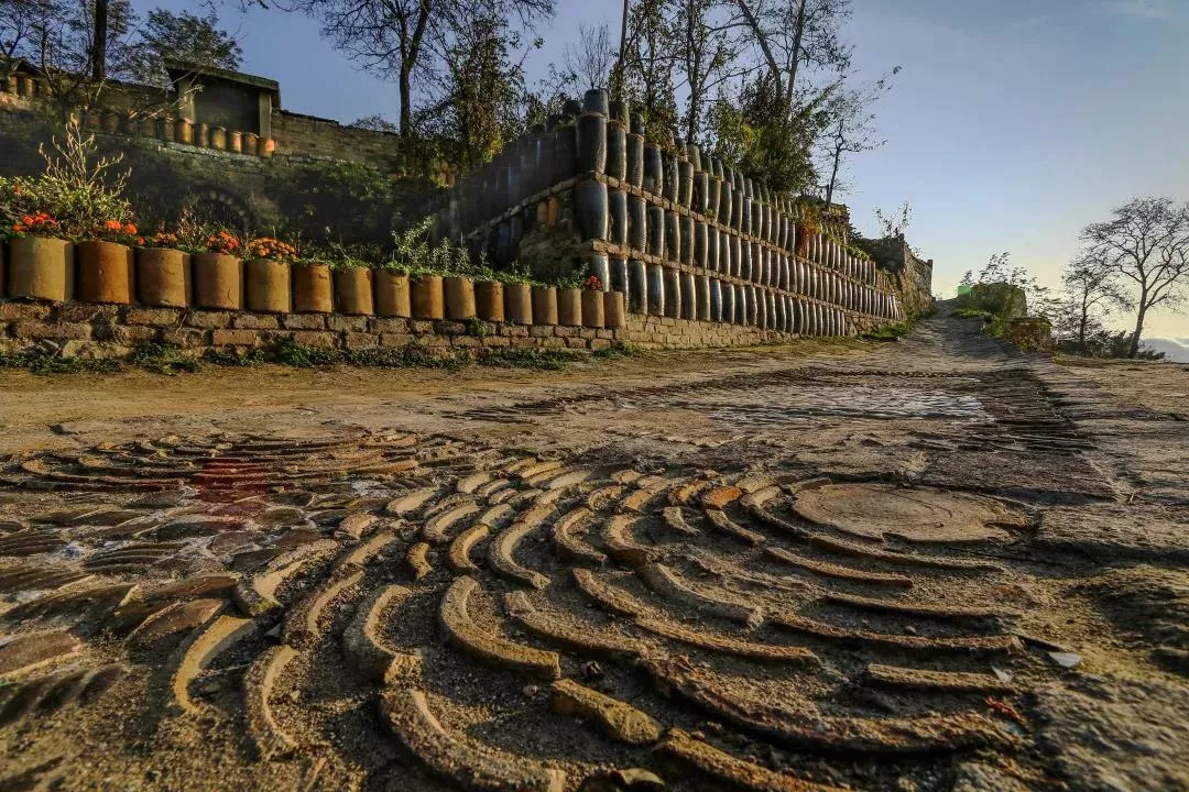 久而久之,古鎮(zhèn)形成了罐罐壘墻、瓷片鋪路等獨特的村落風(fēng)貌,陳爐人在這罐罐里植樹種花,把自家的院落,掩映在一片綠色之中。