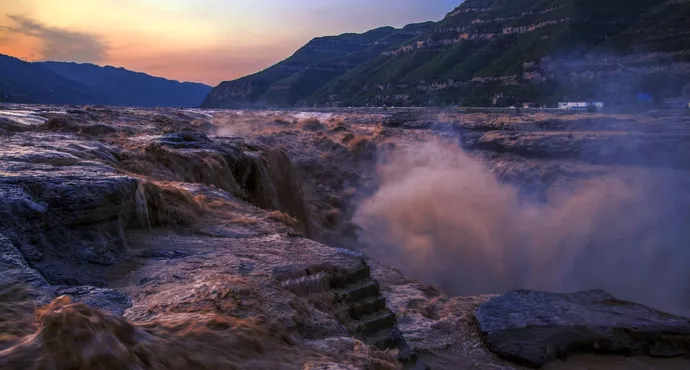 “源出昆侖衍大流,玉關(guān)九轉(zhuǎn)一壺收”,黃河是中華民族的母親河,壺口瀑布是鑲嵌在九曲黃河之上的一顆璀璨的明珠,也是世界上唯一的金黃色大瀑布。-黃河流經(jīng)黃士高原,進(jìn)入秦晉峽谷,河床由四五百米寬忽然收縮成四五十米,猶如巨壺傾湯,壺口緣此得名。聞名中外,氣吞八荒,被譽(yù)為“天下奇觀、中華之魂”的黃河壺口瀑布國家風(fēng)景名勝區(qū), 集河瀑峽谷、十里龍漕、孟門要津、龍王辿遺址、大禹王廟、古渡小鎮(zhèn)、壺口鼓舞為一體,不僅彰顯著母親黃河波瀾壯闊、鬼斧神工的自然奇觀。河黃河從革命圣地延安流過,在宜川流下了世界奇觀——黃河壺口瀑布。季節(jié)更替,水量變化,形成了神奇的壺口八景:水底冒煙,旱地行船,霓虹戲水,晴空灑雨,旱天鳴雷,冰封倒掛,山飛海立,石窩寶鏡,在這里,您可以春賞桃花漲水,夏聽旱天鳴雷,秋觸晴空灑雨,冬游十里冰河。