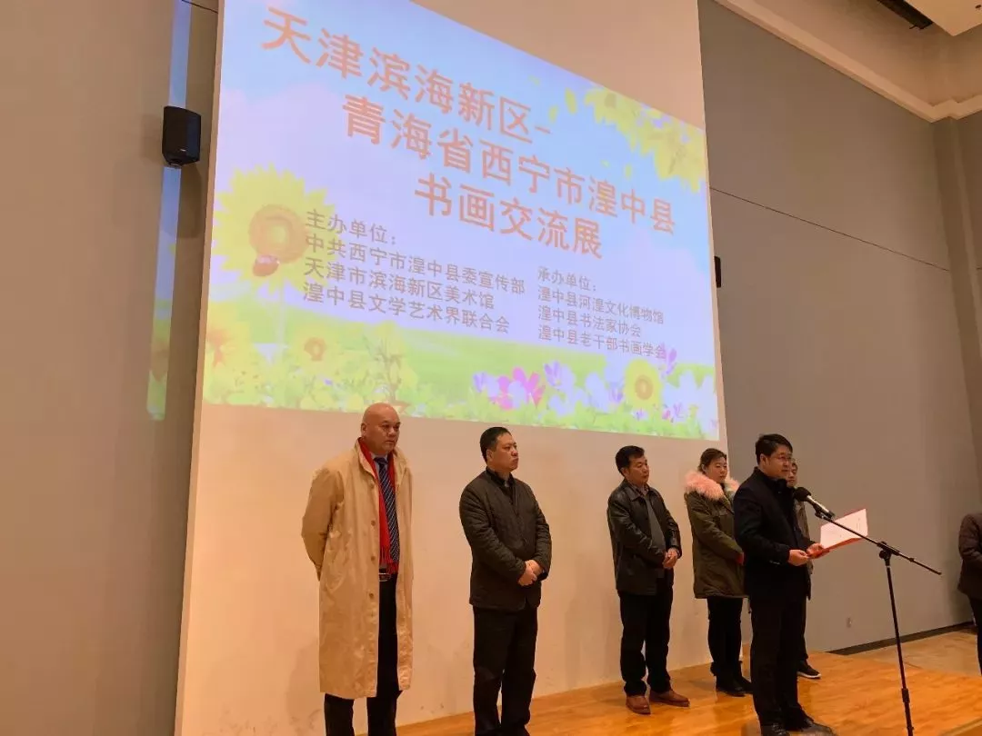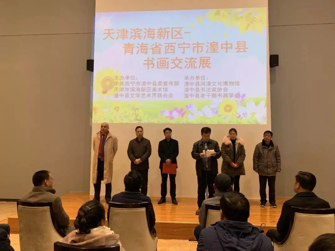 11月21日,由中共湟中縣委宣傳部、天津市濱海新區(qū)美術(shù)館、湟中縣文聯(lián)主辦,湟中縣河湟文化博物館、湟中縣書法家協(xié)會、湟中縣老干部書畫學(xué)會承辦的“天津濱海新區(qū)——青海省西寧市湟中縣書畫交流展”開展儀式在河湟博物館舉行。天津濱海新區(qū)美術(shù)館黨支部書記王希宏、中國書協(xié)會員、天津書協(xié)理事兼創(chuàng)作評審委員會委員郝軍等來自天津的藝術(shù)家及湟中縣委常委、宣傳部部長趙國武與我縣縣委各部門、縣直各機關(guān)單位分管領(lǐng)導(dǎo)、書畫