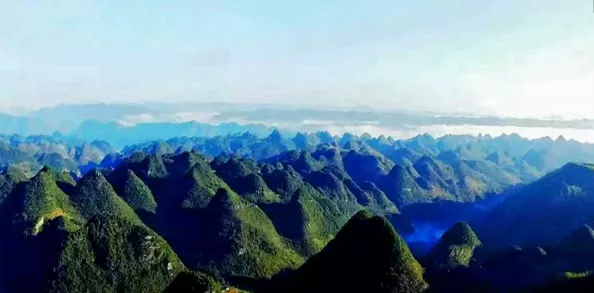 萬峰成林金蟾大山位于貴州省畢節(jié)市納雍縣西北部,距羊場鄉(xiāng)政府14公里,距縣城85公里,東經(jīng)104度56分,北緯26度57分,東連姑開鄉(xiāng),西南、西北與赫章毗鄰,北與畢節(jié)縣陰底鄉(xiāng)對河相望,總面積126.75平方公里,因形似癩蛤?。ū镜胤Q癩疙寶)而得名,最高海拔2476米,是納雍縣最高峰,貴州第4高峰。氣勢磅礴云霧繚繞在海拔2000米的山溝里發(fā)現(xiàn)大量海洋生物化石。海星
