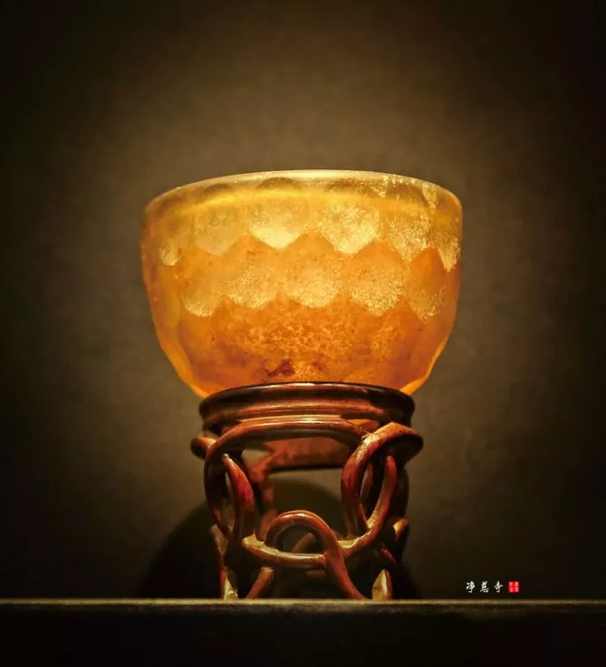 這是美術(shù)館里展示的來自異域佛教的琉璃碗,晶瑩剔透。