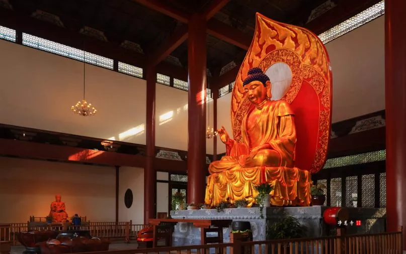 演法堂后是雄偉的釋迦殿和凈慈寺美術(shù)館。