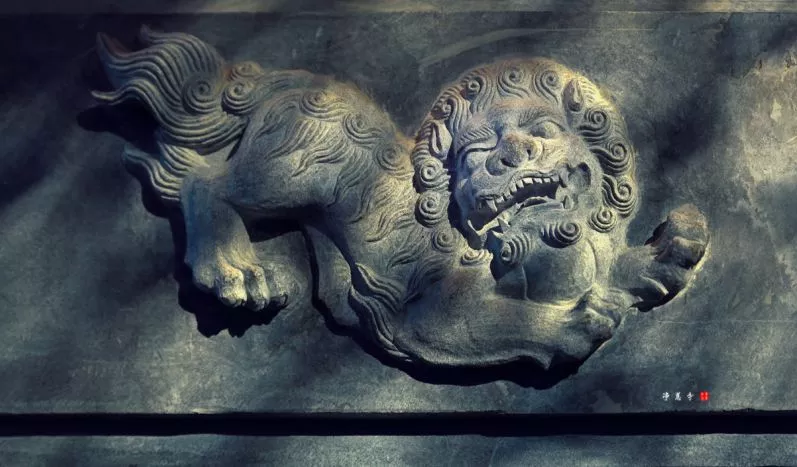 獅子在佛教中有很多寓意,如尊貴、威嚴(yán)、堅(jiān)強(qiáng)等。獅子的吼聲振聾發(fā)聵,能夠抵抗歪理邪說。不過這只獅子雕刻的有點(diǎn)萌,少了些威猛,多了些可愛。
