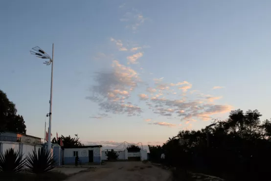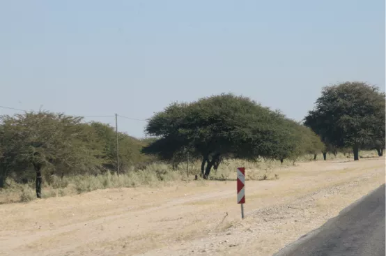 下午三點(diǎn)過,完成物資捐贈流程后,來不及過多寒暄,我們一行八人兩輛車趕緊繼續(xù)往南,趕往三十多公里外的納米比亞邊境口岸。因?yàn)槲覀兪菐к嚦鼍?,納米那邊的海關(guān)手續(xù)比較繁雜,遲了擔(dān)心當(dāng)天辦不完車輛入境手續(xù)。