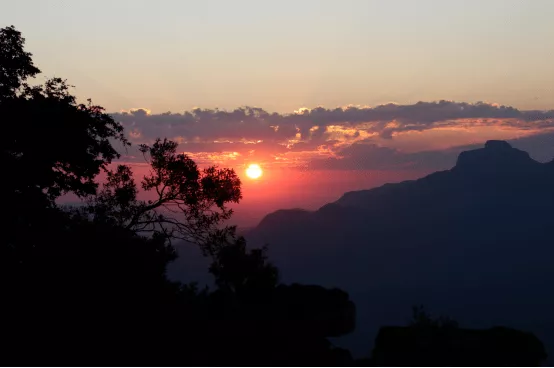 剩下黃總和譚不煩還舉著手機(jī),對著夕陽的余暉和大山不停的拍著。