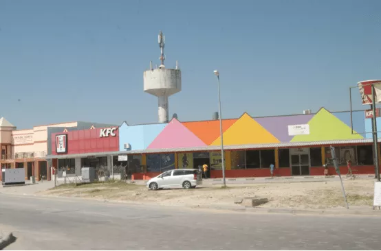 納米比亞的邊境小鎮(zhèn)OSHIKONGO,常駐人口大約5000左右,因與安哥拉的邊境貿(mào)易而興起于上世紀(jì)九十年代中期,輝煌時期,承擔(dān)著納米比亞和安哥拉幾乎所有的邊貿(mào)業(yè)務(wù)。小鎮(zhèn)雖小,酒店、超市、肯德基、加油站、酒吧一樣不少。甚至能不時看到華為的墻繪廣告。