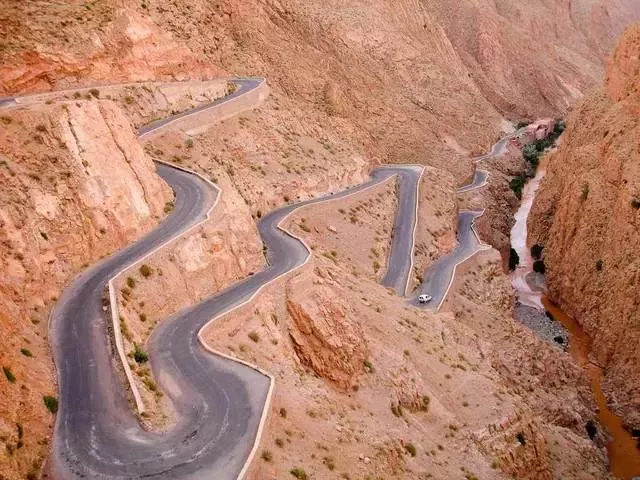 DAY2:從瓦爾扎扎特(或玫瑰谷)出發(fā),經(jīng)過托德拉峽谷、梅祖卡小鎮(zhèn),到達(dá)沙漠邊緣,騎駱駝或乘越野車進(jìn)入沙漠,下午抵達(dá)沙漠宿營地,夜宿沙漠;