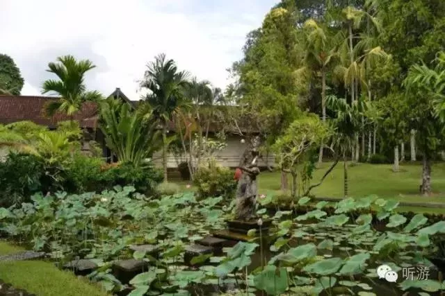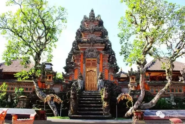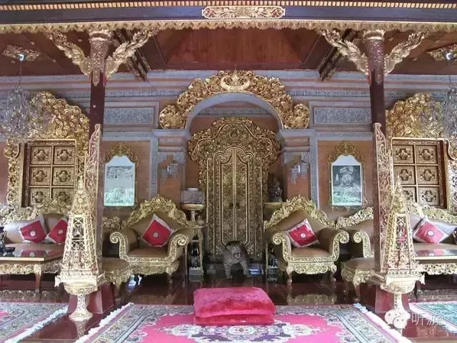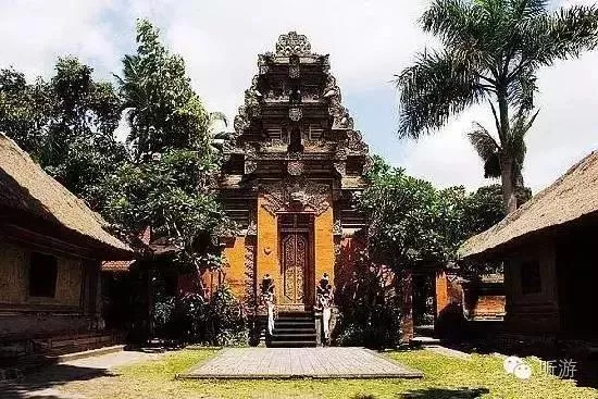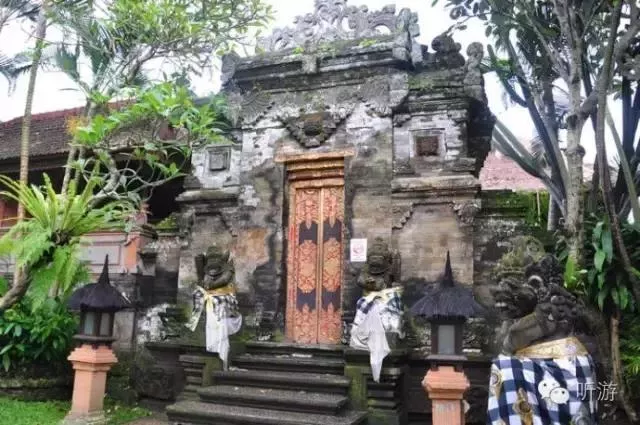 踏進(jìn)王宮,院落幽靜,建筑物充滿自然、古樸、典雅的印尼特色,既有精工細(xì)作雕刻的山門,院墻,甚至墻壁,各座院子門口的石雕佛像,也有草編的屋頂,熱帶植物的艷麗色彩與金碧輝煌的院門。
