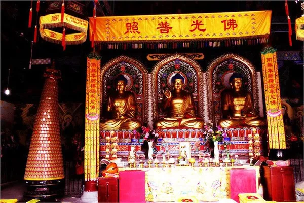 特色景觀:大雄寶殿:現(xiàn)為國內(nèi)建筑面積最大的大雄寶殿。