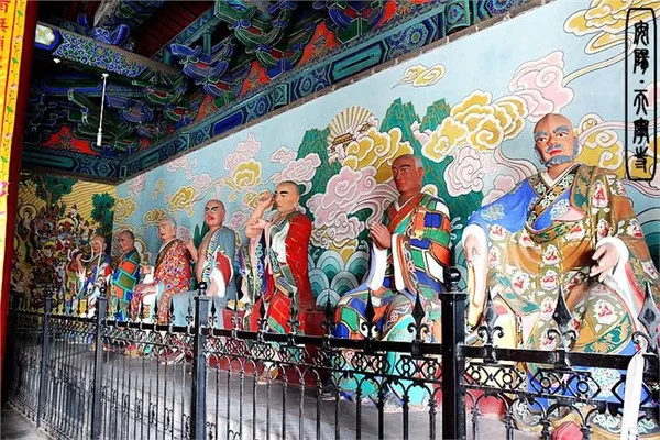 大殿的羅漢造型不一,有著精美,神態(tài)恣意,面容嚴肅。壁畫更是充滿了仙意。