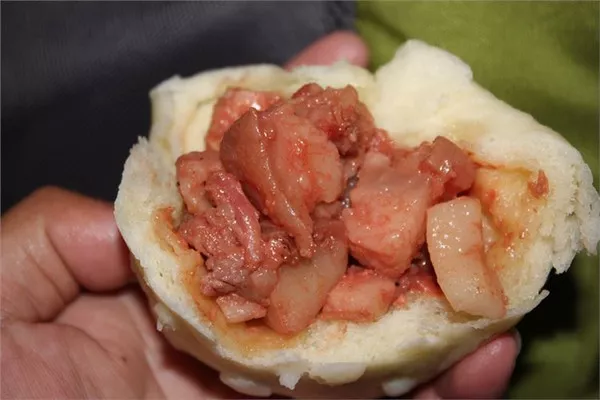 包子里面的方塊腐乳肉。2元一個,適合喜歡吃肉的人。