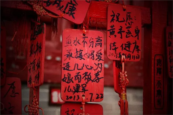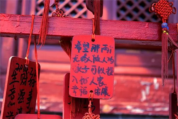 有為父母求健康的,有為愛人求平安的,有為子女求前程的,也有為自己求姻緣的,許愿的架子上,掛滿了人們的心聲。