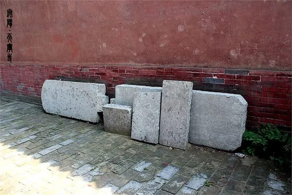 一些已經(jīng)看不清字跡的石碑,被堆放在墻邊上。