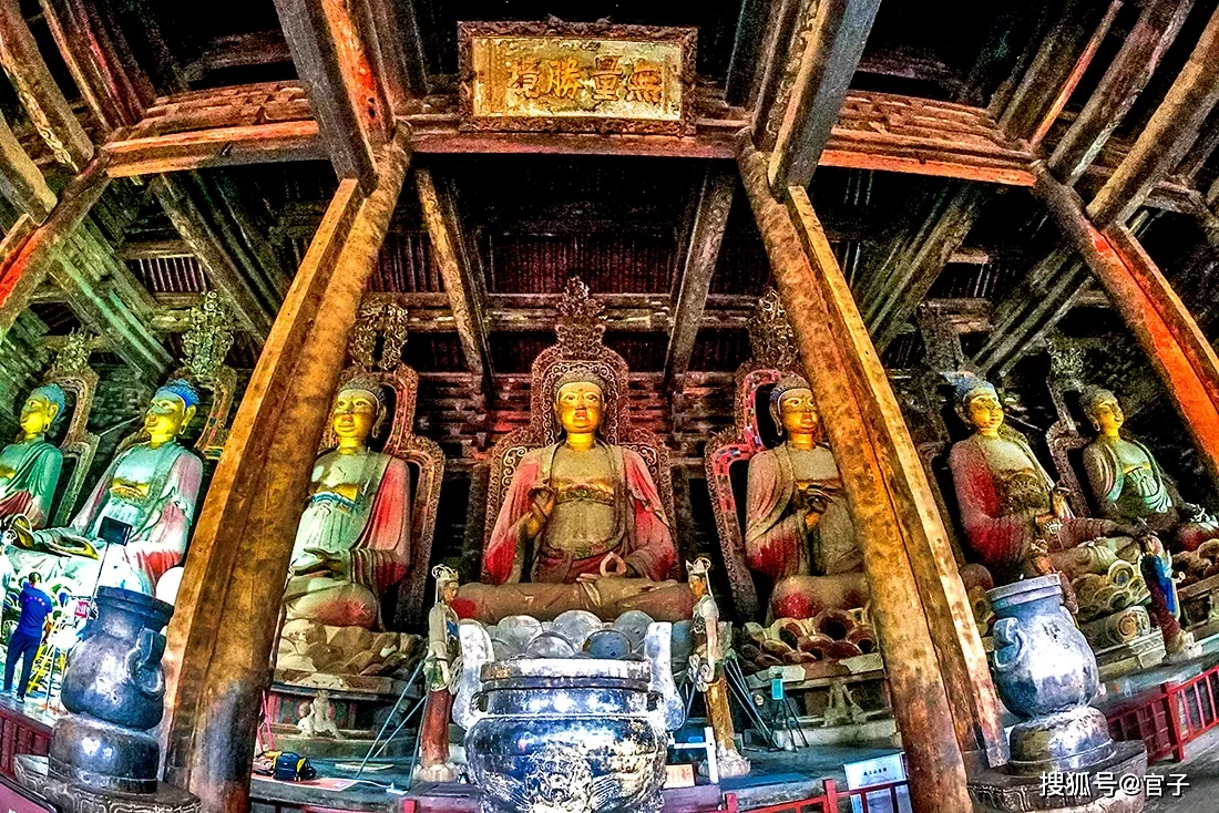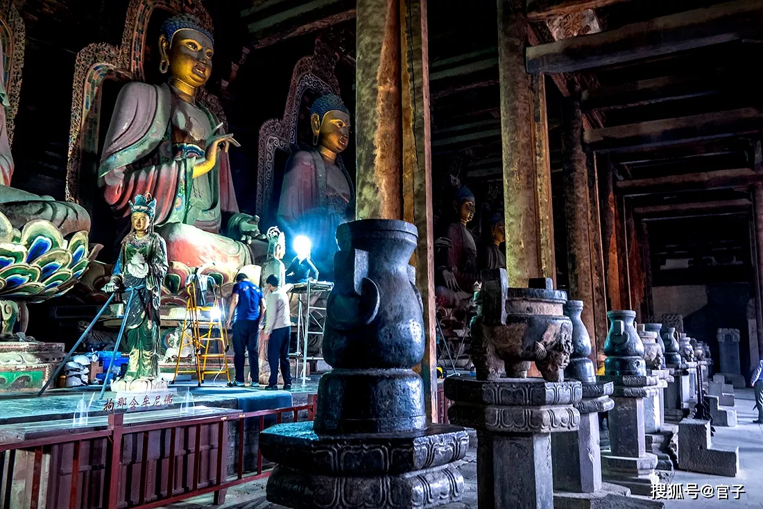 據(jù)了解,為保證大雄殿內(nèi)一切文物保持遼代原樣,就連佛祖背后的灰塵,都不忍拂去,大雄殿的主要木構(gòu)件、建筑彩繪、殿內(nèi)彩塑佛像和彩塑脅侍像均為遼代原作。