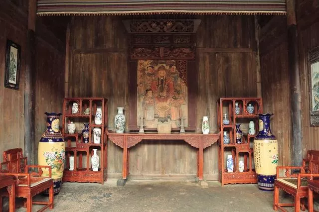 遠(yuǎn)遠(yuǎn)觀望這座古宅,整個建筑群氣勢磅礴,傲然矗立,雄居險關(guān),那巍峨城墻與周圍的地理環(huán)境襯映出一股威嚴(yán)和霸氣,令人敬畏而卻步。近看古宅的一窗一門,一室一樓,既古樸典雅,又瀟灑氣派。莊院兩端有小姐樓及繡花樓各一座,飛檐高翹,一東一西,遙相呼應(yīng),造型布局層次分明,錯落有致。最具特色的“走馬轉(zhuǎn)角樓”、“一柱六梁”、“一柱九梁”的建筑格局,備受建筑行業(yè)的推崇和借用。
