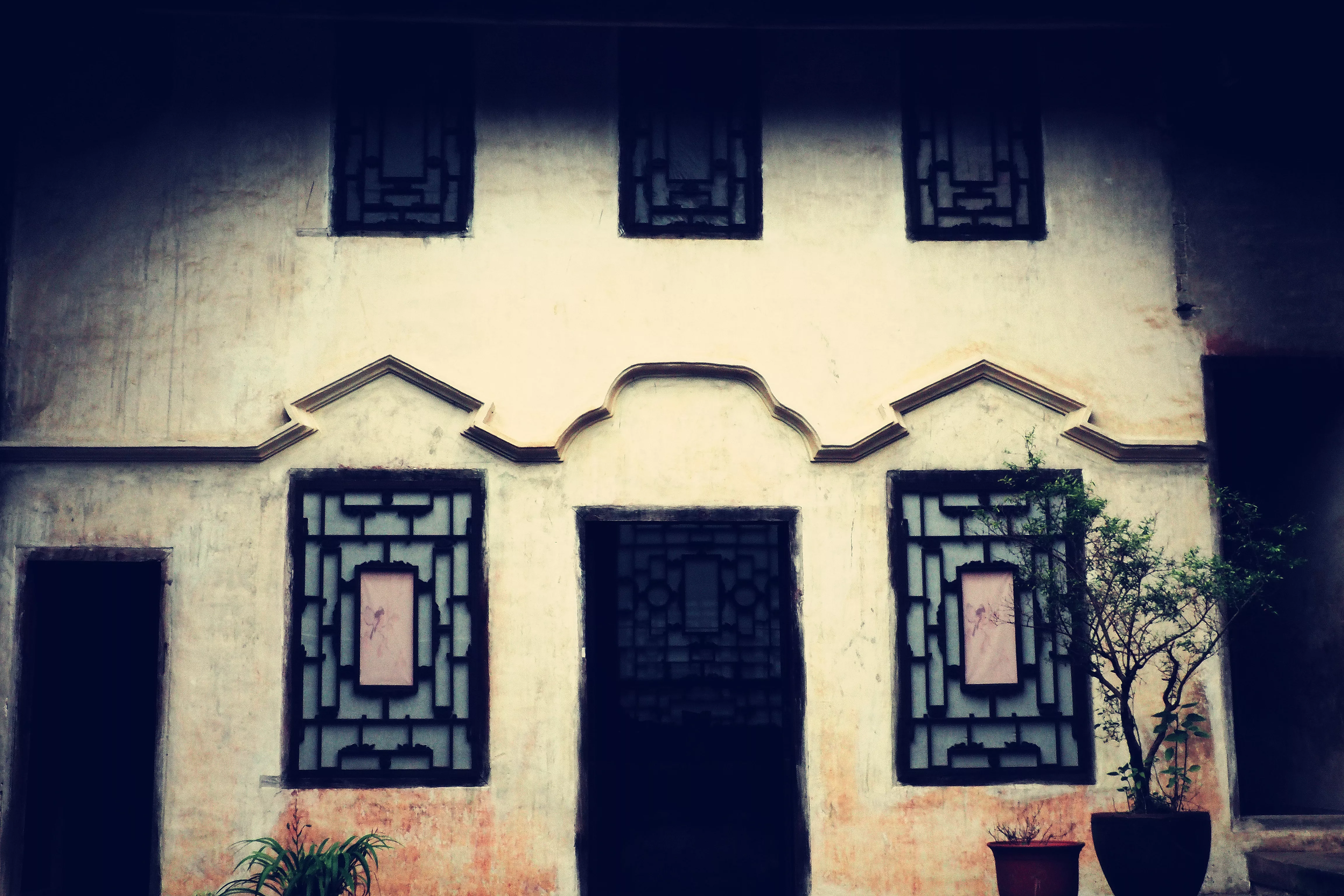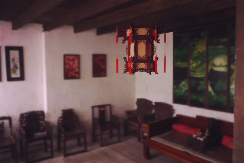 庭院深深,穿過大門,游走在古宅的房間中,遇到一如現(xiàn)今的復(fù)式小二層建筑,緩緩的按著木制階地的臺階,上到二樓。幽暗的房間中,空空蕩蕩,不禁透著絲絲寒意。腦海中浮現(xiàn)了一幕幕古宅驚魂的畫面。“砰砰砰”的心跳迫使我趕緊下了樓。