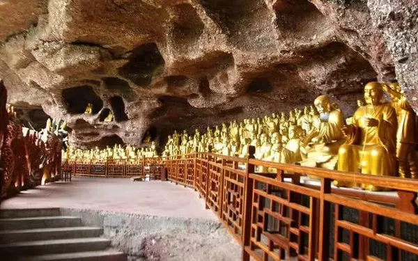位于都嶠山主峰云蓋峰東南側(cè),世界第一大佛字書寫在一座像佛形的山上,故有“山石一尊佛,佛是一座山”的美譽。有著“嶺南一絕”的慶壽巖禪寺也依山而立其中,周邊樹木郁蔥,池水清澈,天地合一的感覺如置身仙境中,山水景觀十分美麗,故有“廣西的九寨溝”之稱。