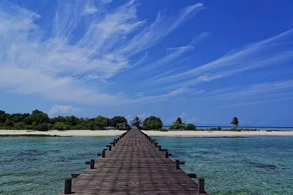 從仙本那碼頭出發(fā),乘50分鐘向北航的快艇便能扺達(dá)馬達(dá)京島。馬達(dá)京是由兩個(gè)小島 (馬達(dá)京島與小馬達(dá)京島)組成的。潮漲時(shí),兩島相隔半公里;潮退后,兩島被一條潔白的"沙橋"連成一片,形成一條潔白的拖尾沙灘。兩側(cè)海水動(dòng)靜分明,一邊狂野,一邊深沉,讓人印象深刻。