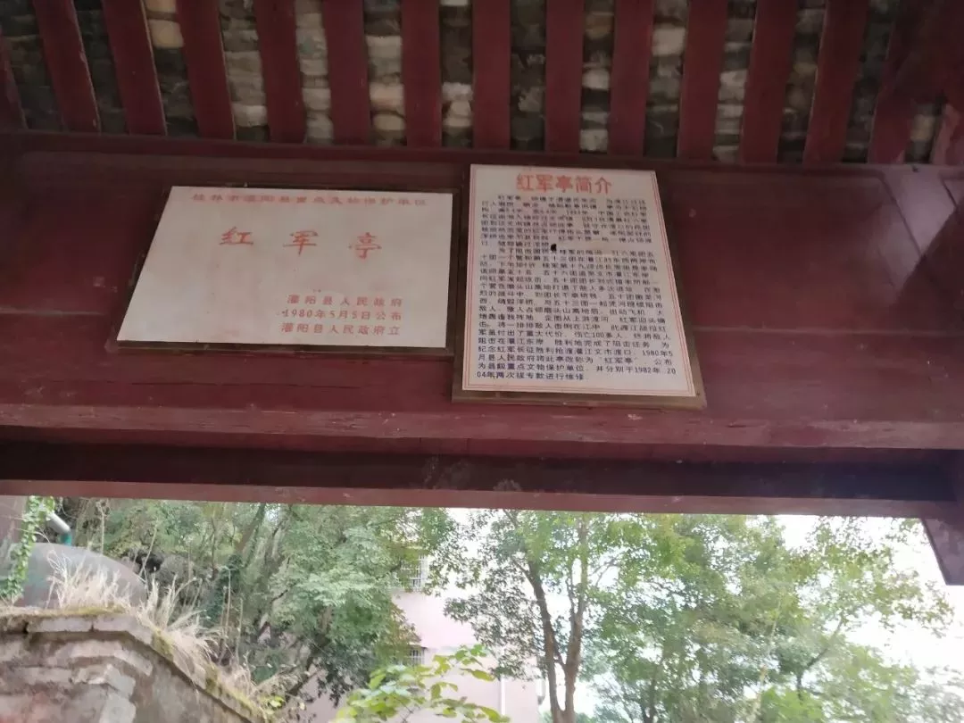 灌陽(yáng)縣文市鎮(zhèn)與全州縣咸水鎮(zhèn)五福關(guān)的戰(zhàn)斗,是紅六軍團(tuán)過廣西與桂軍展開的兩次最大的戰(zhàn)斗,都犧牲了100多人,分別犧牲了一位紅軍團(tuán)長(zhǎng)。為紀(jì)念紅軍由文市渡口勝利渡江,1980年5月灌陽(yáng)縣人民政府將此亭改稱為“紅軍亭”,公布為縣級(jí)文物保護(hù)單位,并于1982年、2004年兩次撥??钸M(jìn)行維修。