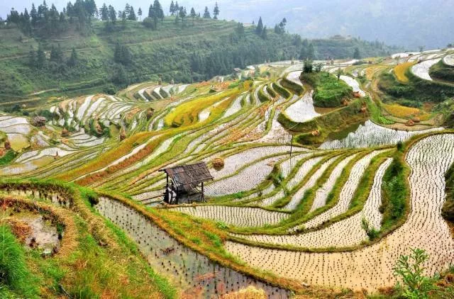 加榜梯田位于貴州省黔東南苗族侗族自治州從江縣西部月亮山腹地的加榜鄉(xiāng)東北面,距縣城80公里,是中國(guó)最好梯田之一,梯田中散落著苗鄉(xiāng)特有的吊腳樓。猶如點(diǎn)綴在銀河里的行星。是苗族人世世代代留下的杰作。